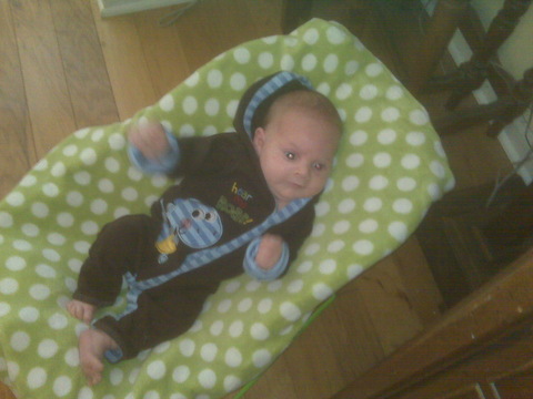 Finn on his one-month birthday. (Sorry for the poor camera phone quality; you can't see the color of his ever-changing eyes)