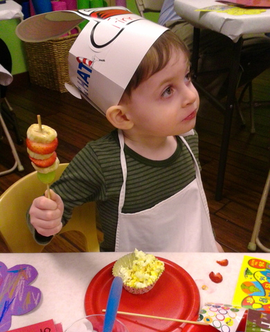 Finn, in his Cat-in-the-Hat hat, at pre-school, where they had Dr. Seuss Day (photo by Lydia)