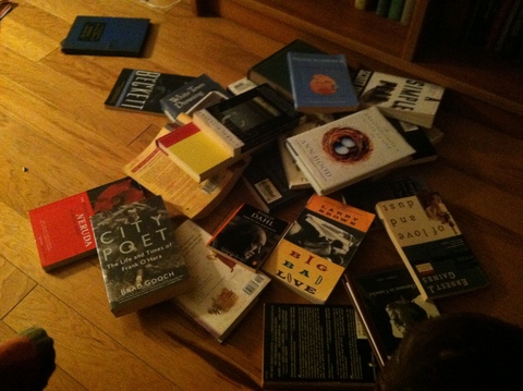 Here's the partial list of the authors Finn took off the shelf that he put himself on: