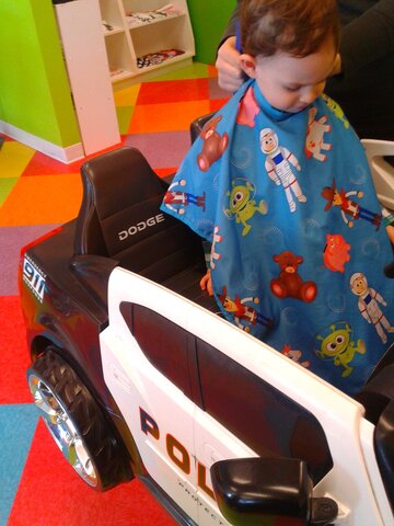 Finn's first haircut, just before his second birthday (tomorrow). He loved it. Lydia and big brother Angus took him, and there were no tears. (Good thing they didn't take me.)